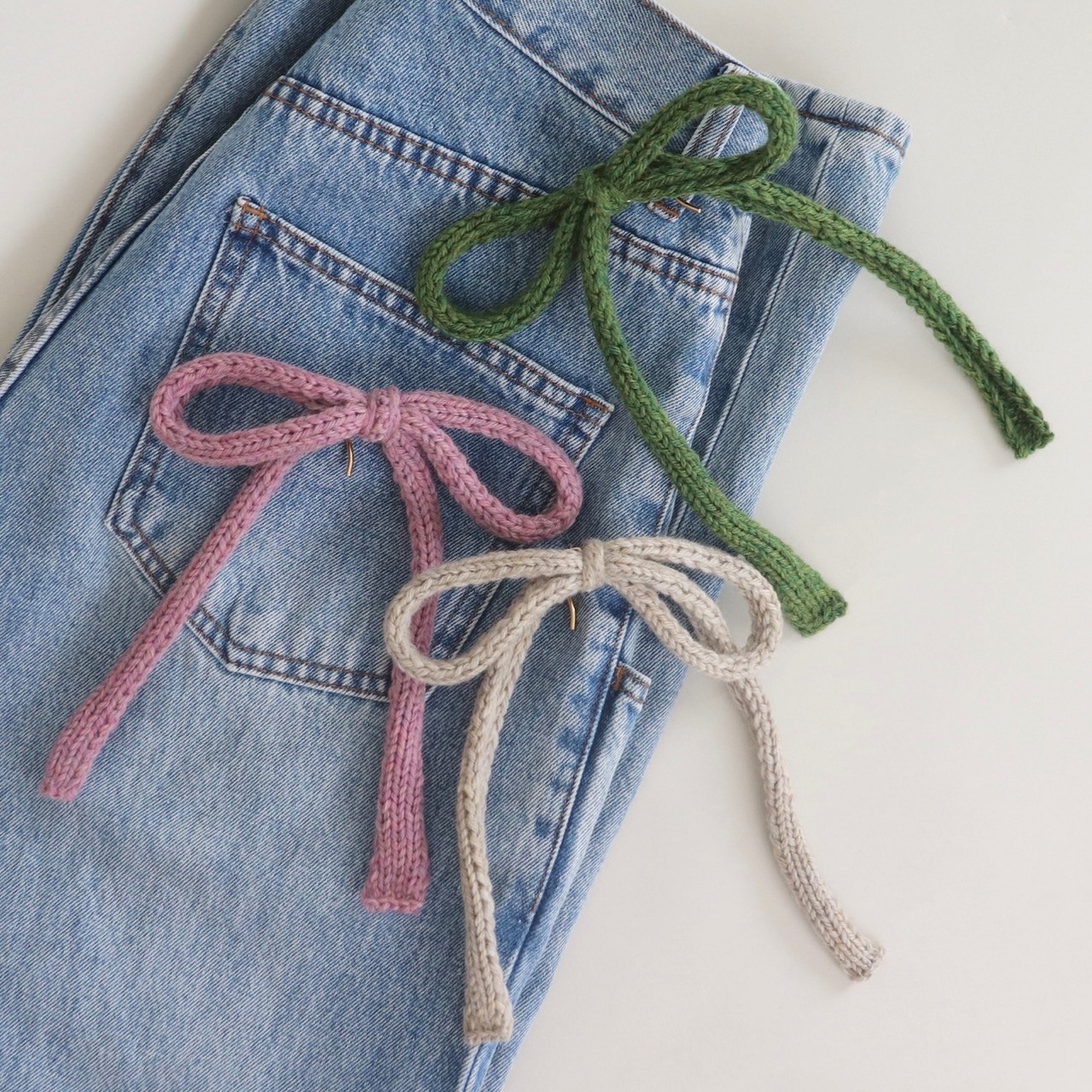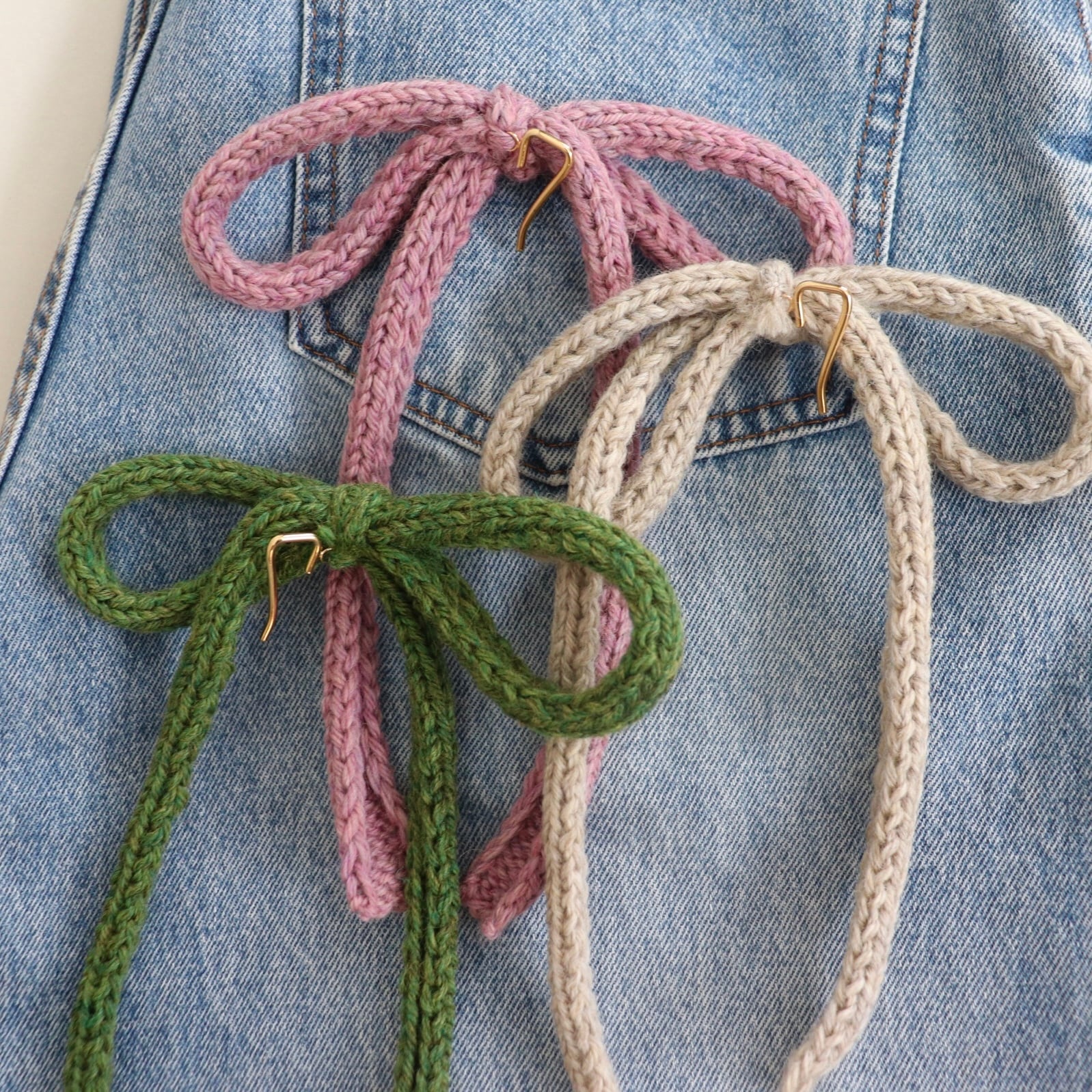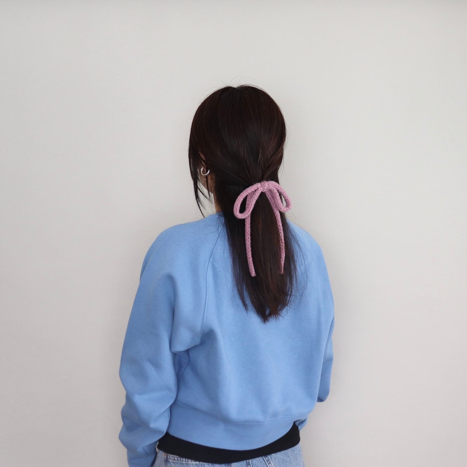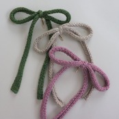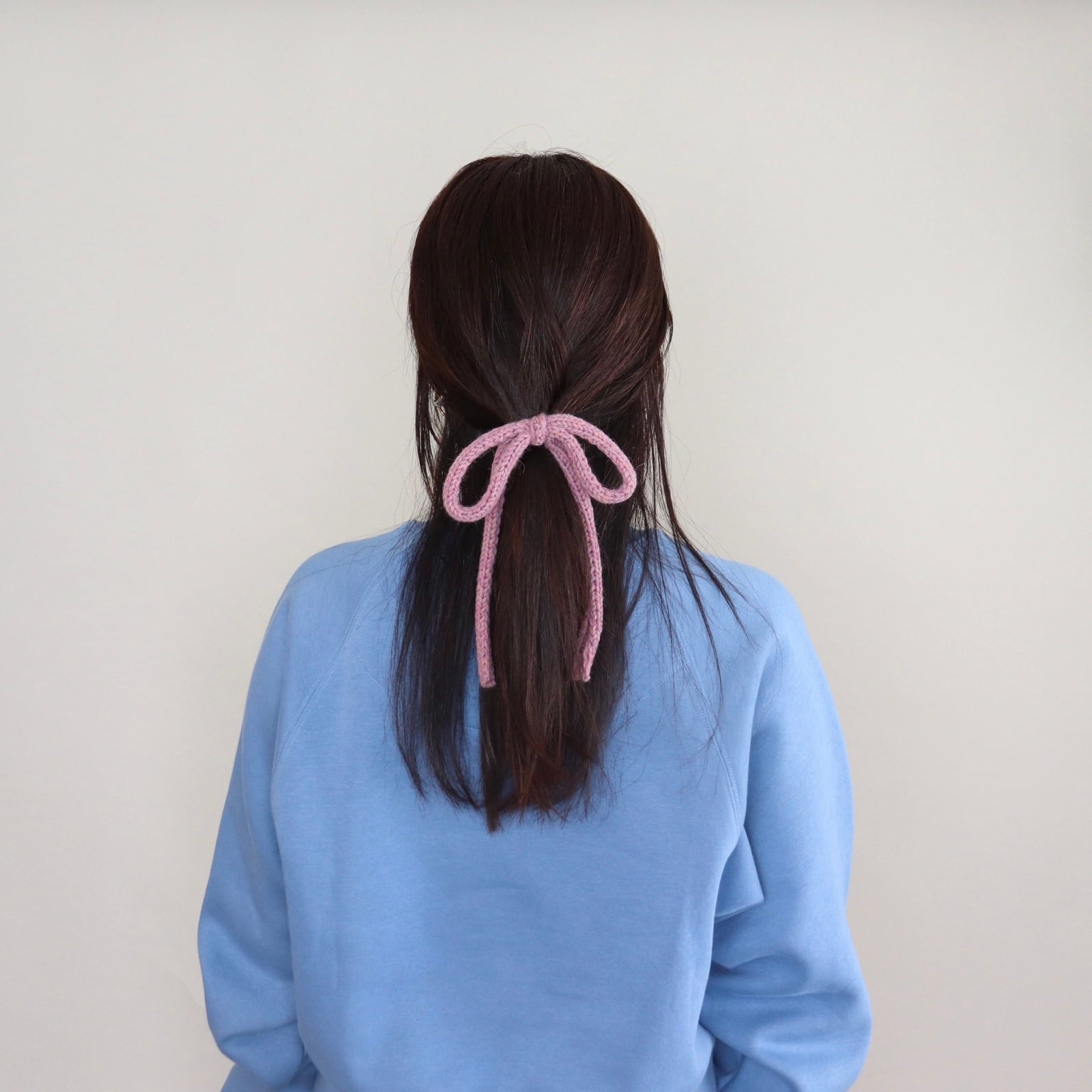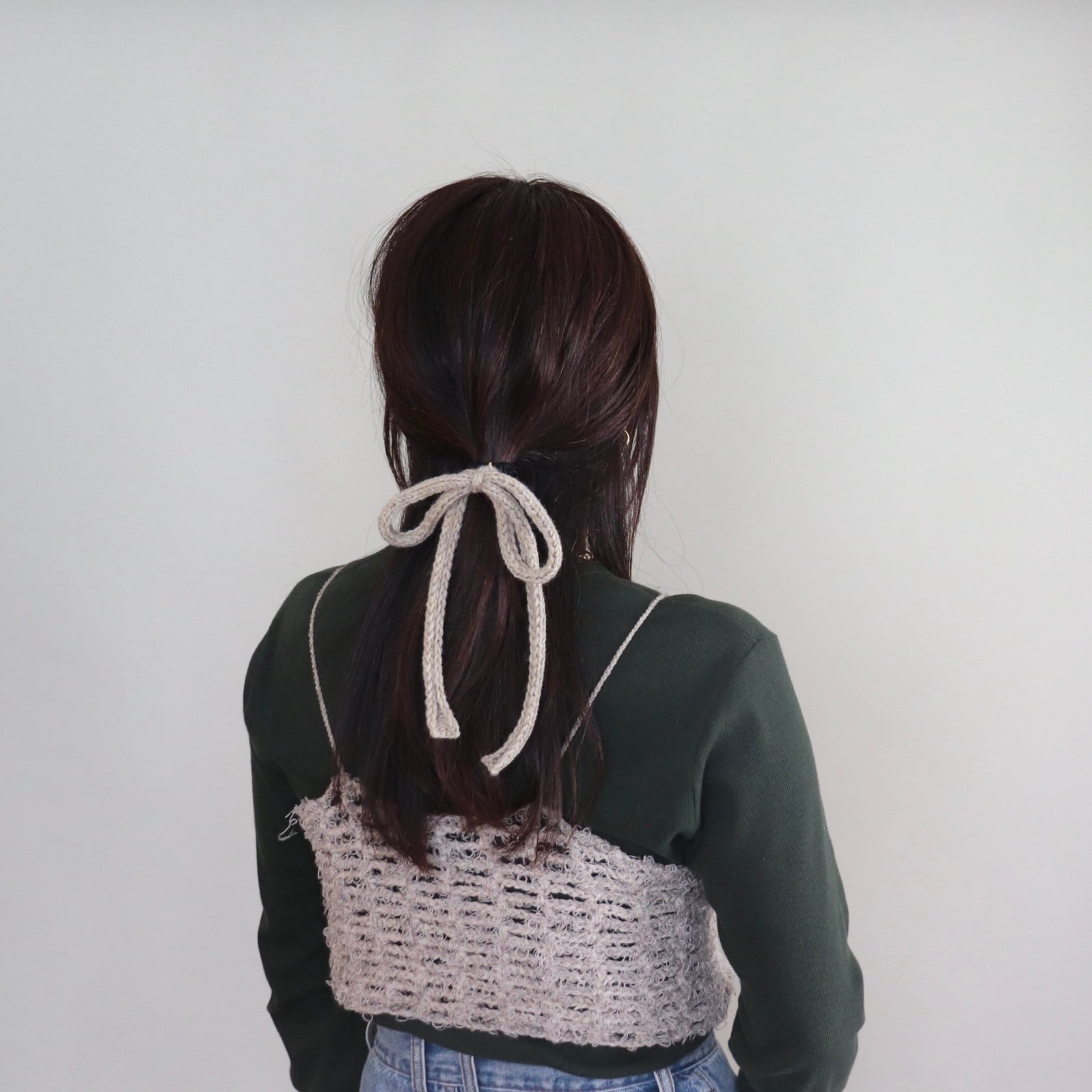 大人っぽく見えるように、細長い作りにして、ゆるっと脱力感のあるリボンに仕上げました。色も甘くなり過ぎないように、くすみカラーを採用。コーディネートのポイントにおすすめです。イヤーカフなので、ヘアゴムと違ってゴムが切れる心配もなく長く楽しめます。